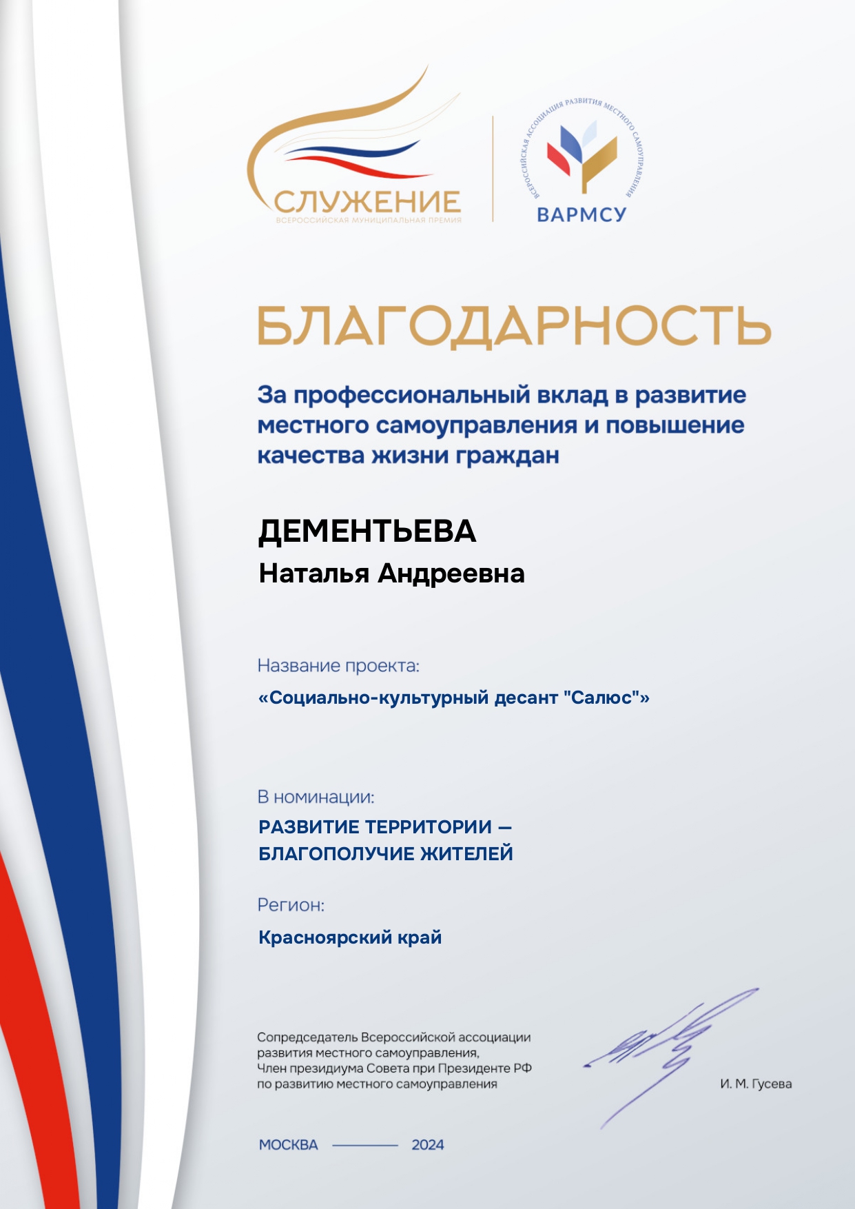 Культурные инициативы отмечены благодарностью Всероссийской муниципальной премии «Служение»